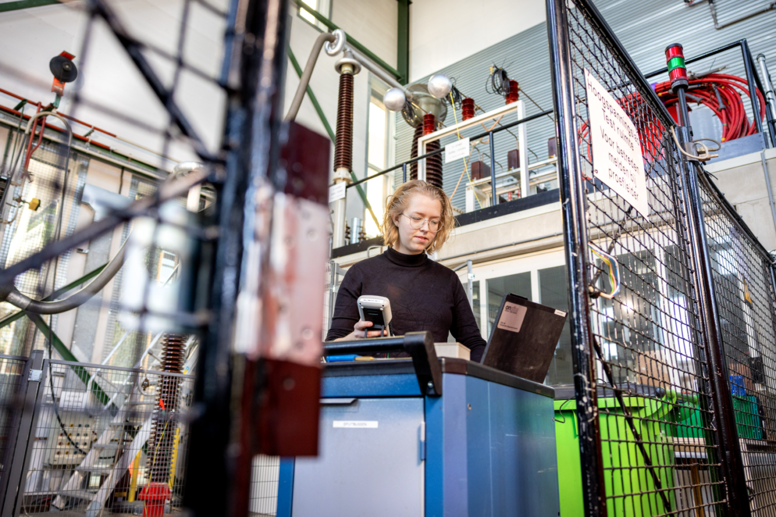 Het hoogspanningslab voorziet ook in het ontwikkelen en testen van technische ontwerpen en prototypes van apparatuur en installaties. Zo weten we zeker dat de componenten en materialen veilig en volgens de voorgeschreven richtlijnen gebruikt kunnen worden.